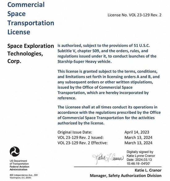 如FAA所言:“Space X 符合所有安全、环境、政策和财务责任等要求。”