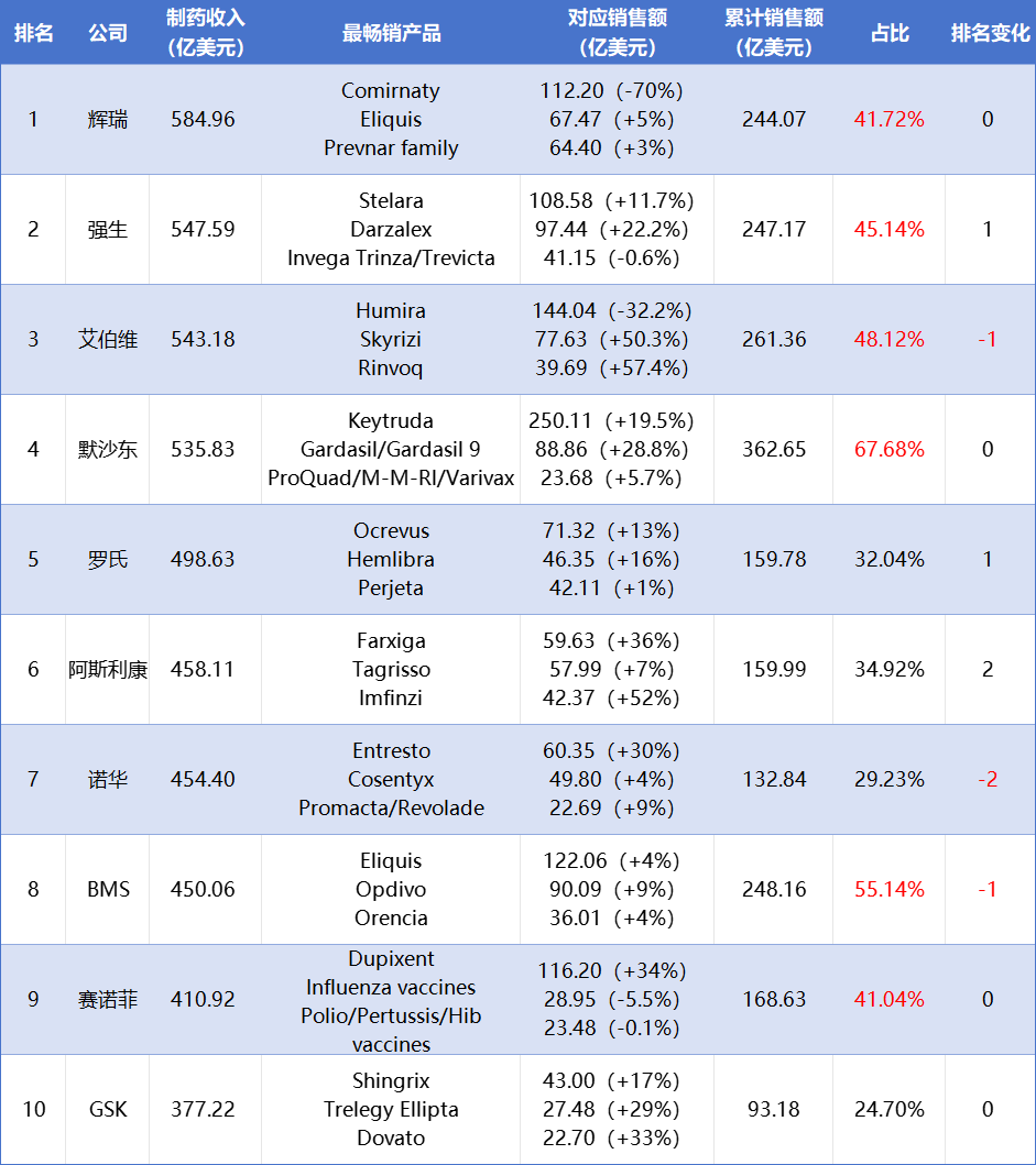全球药企TOP10(按总营收)