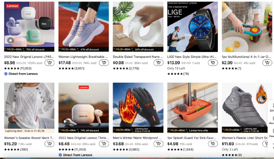 Temu平台大部分价格都在10美元以下,一双运动鞋价格10美元,一对耳环定价只要2美元,甚至还有大量售价99美分的细碎商品,而这些不起眼不值钱的小东西在亚马逊则至少需要3-5美元。