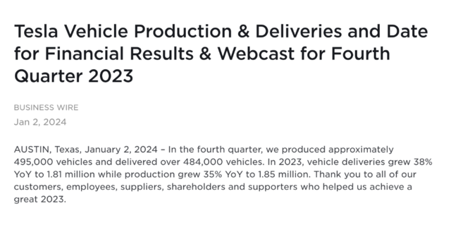 而在美国市场,特斯拉正面临着市场降温以及来自混动车型的压力。去年第四季度美国电动车市场增长出现了减速迹象,同比增长从第三季度的49%下滑到40%,也低于2022年同期的52%。