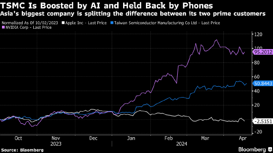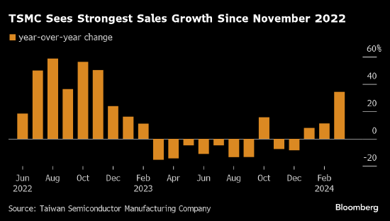 台积电上周披露季度营收创下一年多以来最快增速,表明人工智能芯片需求开始抵消智能手机市场下滑的影响。