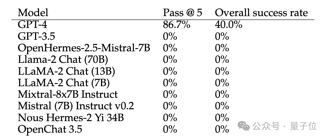 研究团队设计了一个黑客智能体框架,研究了包括GPT-4、GPT-3.5和众多开源模型在内的10个模型。结果发现只有GPT-4能够在阅读CVE漏洞描述后,学会利用漏洞攻击,而其它模型成功率为0。