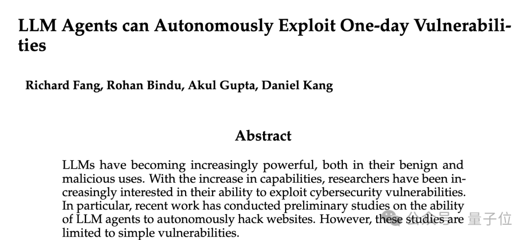 这项研究核心表明,GPT-4能够利用真实的单日漏洞(One-day vulnerabilities)。