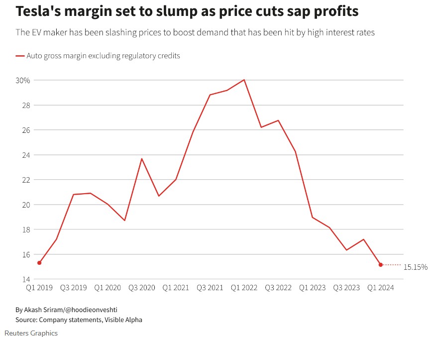 据Visible Alpha调查的20位分析师称,华尔街预计不计入政策抵免的汽车毛利率为15.2%,低于去年同期的19%,为2017年第四季度以来最低。
