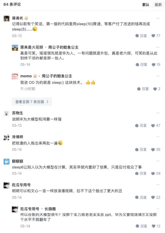也有专家指出,大模型的计算和生成过程确实需要时间,而time.sleep(6)可能是为了展示模型计算的实际耗时。在AI领域,模型的计算速度是衡量技术先进性的重要指标之一。因此,华为可能是在尝试向观众展示其AI计算的效率。