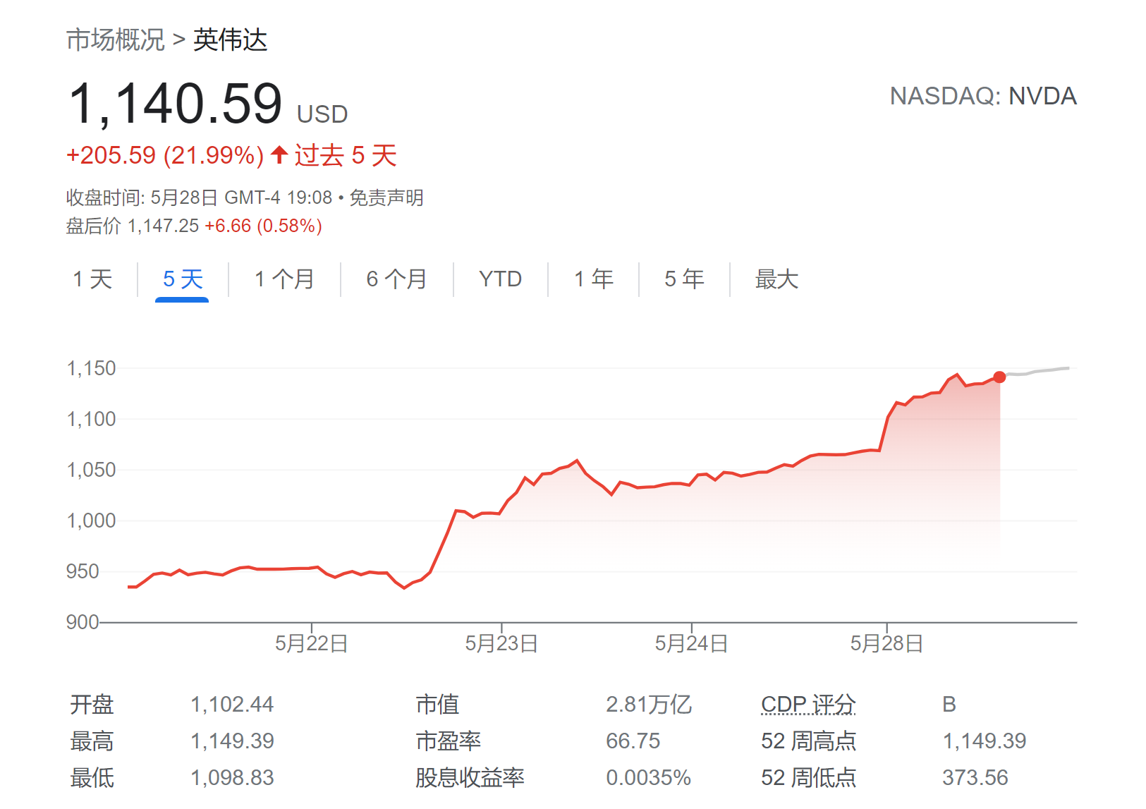 英伟达的强劲财报给投资者留下了深刻的印象,使其轻松实现了“三连涨”,三日累计涨幅约20%。在英伟达的带动下,纳指也连续第三个交易日创收盘历史新高。