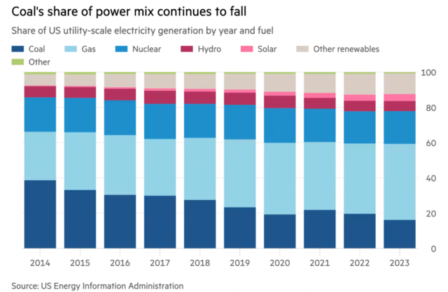 多个电力公司正在推迟煤炭电厂的退役计划。Alliant Energy最近将其威斯康星州燃煤电厂转为天然气的计划从2025年推迟到2028年。FirstEnergy则因“资源充足性问题”放弃了2030年淘汰煤炭的目标。