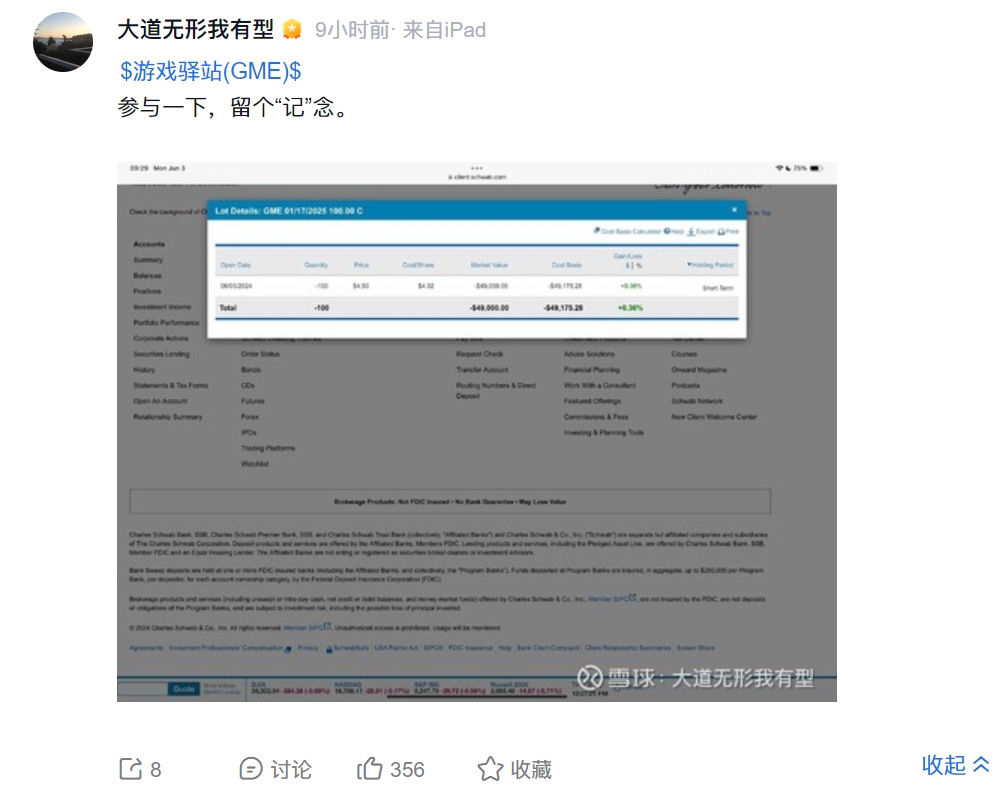 有消息称,摩根士丹利环球金融犯罪部门及外部律师已讨论是否取消Gill的账户,并发现Gill上月买入游戏驿站的认购期权之后,才在社交平台X贴文并引发游戏驿站股价暴涨。而当时他买入的部分期权合约已到期,意味Gill在当时已从中获利。