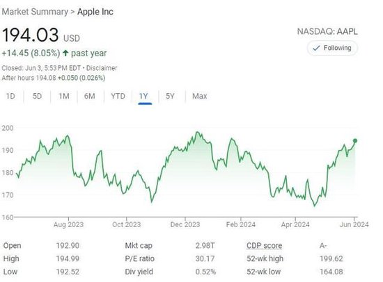 苹果股价周一涨近1%,年内重新转为累涨。