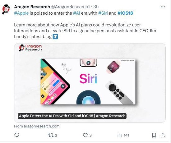 有分析称,苹果将评级新版Siri正式进入AI时代。