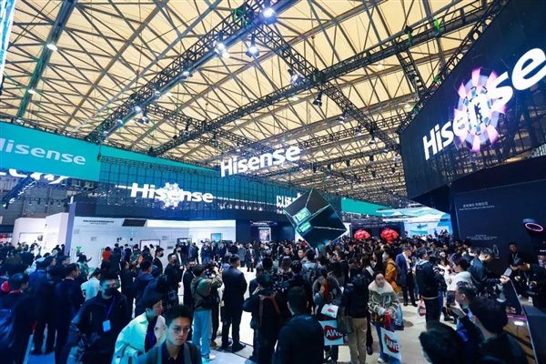 另外,我们今年 3 月还去上海参加了堪称世界三大消费电子展之一,以及全球家电产业风向标的 AWE 展,而在展馆里面,光海信一个牌子就 “ 霸占 ” 了一个巨大的展区。