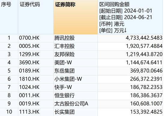 Wind数据显示,2024年1月1日至今,小米共计斥资26.64亿港元(约合24.78亿元人民币)回购,这个金额在整个港股能排到第六,仅次于腾讯、汇丰控股、友邦保险、美团和东岳集团。对比小米自己,近五年同期,这个金额也是第二多,仅次于2021年。