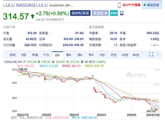 虽然lululemon还很赚钱,在2023财年其净收入96.2亿美元创下历史新高,今年第一季度净营收也增长了10%。但今年以来,其股价已跌去近40%。