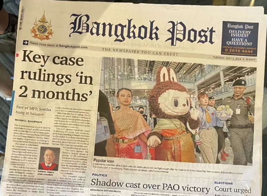 泡泡玛特旗下当红IP LABUBU,这些天在泰国火得一塌糊涂。国内99元能买到一只LABUBU,在泰国竟然炒至500元,不仅如此,LABUBU来泰“旅游”还得到了泰国旅体部部长亲自接机待遇,次日,LABUBU机场欢迎仪式的照片登上了泰国《曼谷邮报》头版……