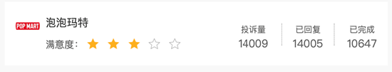 此外,泡泡玛特的服务和质量也劝退了不少消费者。在黑猫投诉 【下载黑猫投诉客户端】上,泡泡玛特的累积投诉量已经达到1.4万条,多数投诉集中在不退款、质量差、预售时间长、客服态度傲慢等问题。