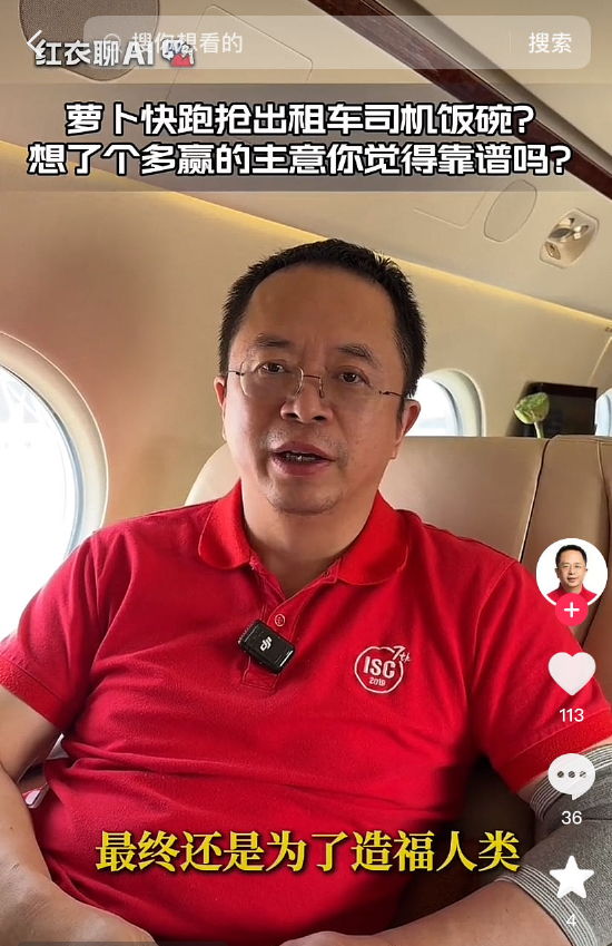 7月12日上午消息,关于萝卜快跑是否抢出租车司机饭碗的问题,360集团董事长周鸿祎发布视频表示,做科技最终还是为了造福人类,为了给大家创造更美好的生活,不应该只是一部分人得利,应该尽可能让大家都能享受科技成果带来的效益。