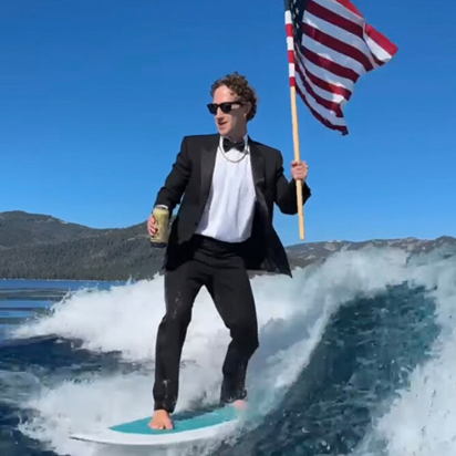 在美国国庆当天,扎克伯格在Instagram平台上发布了自己穿着西装、带着墨镜、喝着啤酒、举着美国国旗滑水的视频。这个看起来有点搞笑的视频在Instagram点赞超过百万,评论接近3万。但是在Threads却什么都没发,甚至懒得同步过去。