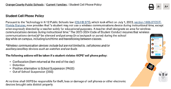 不过,在法律和学校的强硬立场下,学生们也无可奈何。加州橙县校园手机禁令实施的第一天,当地Timber Creek高中就收缴了100多部手机,并且还要打电话叫家长来一道处理违规孩子。佛罗里达的校园更是直接挂出警告:看到手机就没收。