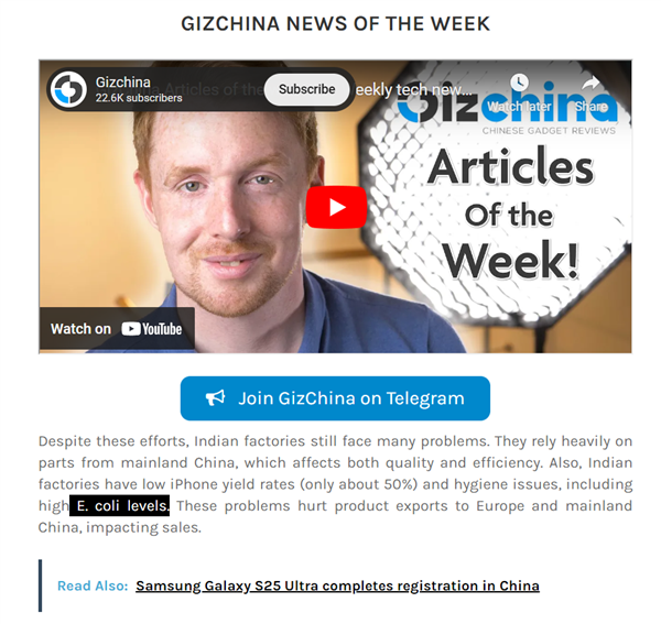 最近,一条指出印度生产的 iPhone 存在良率低和大肠杆菌含量超标问题的新闻,被众多新闻自媒体纷纷评价转发,引起了热议……“ 啊这?印度竟然连生产的 iPhone 都能大肠杆菌超标? ”目前国内的报道都在说,由于印度人的教育素质低和卫生习惯差,导致印度生产的 iPhone 不仅良品率低,还被欧洲检查出大肠杆菌含量超标,所以苹果面临亏损,决定重新把产能转回到中国……