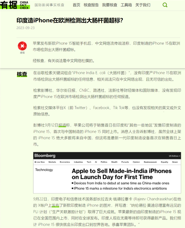 更具有可信度的苹果官方和其他主流外媒,却一点和印度 iPhone 大肠杆菌相关的消息都没有……
