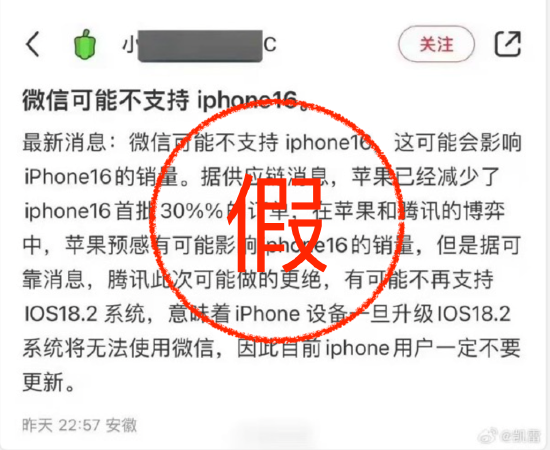 近日,“苹果 微信”等多个相关话题登上微博热搜,有消息称,由于此前苹果要对微信生态开发者征收苹果税,微信可能不支持新的iPhone16手机。对此,9月3日,苹果官方客服表示,“目前没有这样的信息说iPhone16不支持微信,”并表示“不用担心,目前的iPhone手机都是可以正常使用微信的。”同时,在苹果官网,没有查询到任何一款iPhone手机不支持或不兼容微信的提示。