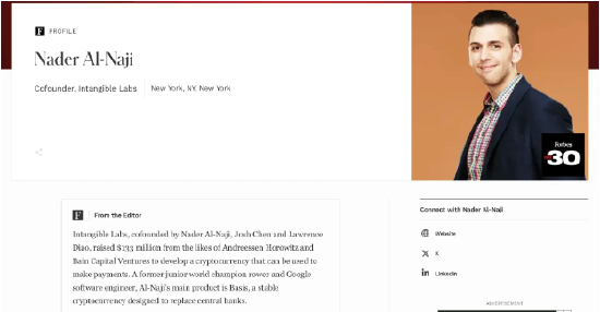 2017年,年仅25岁的阿尔纳吉从谷歌辞职,创办了加密货币稳定币公司Basis,半年之后顺利筹集了1.33亿美元。给他开出支票的都是大名鼎鼎的风投机构,包括:贝恩资本、谷歌投资、安德森霍洛维茨基金、光速资本等等。