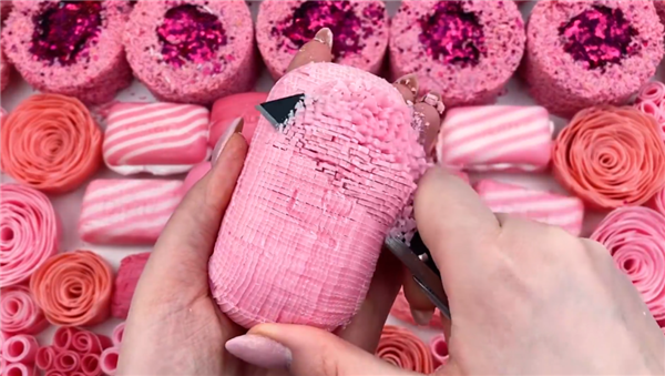 手感独特,能让人随意发泄,很多玩具被使用、切割时更会发出或丝滑或酥脆的声音,听着这咔擦咔擦的就像烦心事也一起碎了一样的得劲。