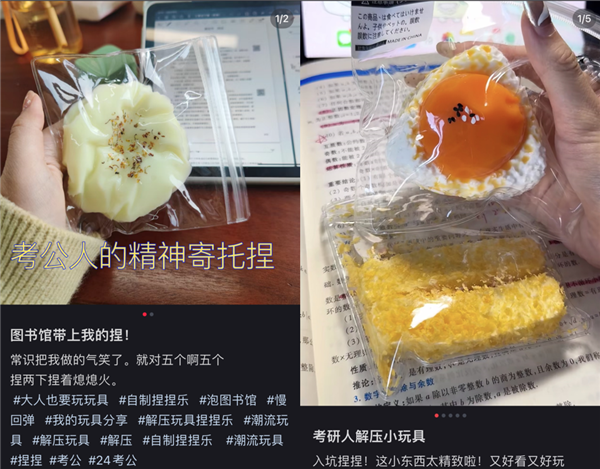 以及被提及最多的,解压, “ 每天工作增压,赚窝囊费用来买解压玩具,这叫生态闭环 ” , “ 解压啊,现在学校里研究生,考研的,捏捏很火热,很多人都是左手捏捏右手习题 ” 。