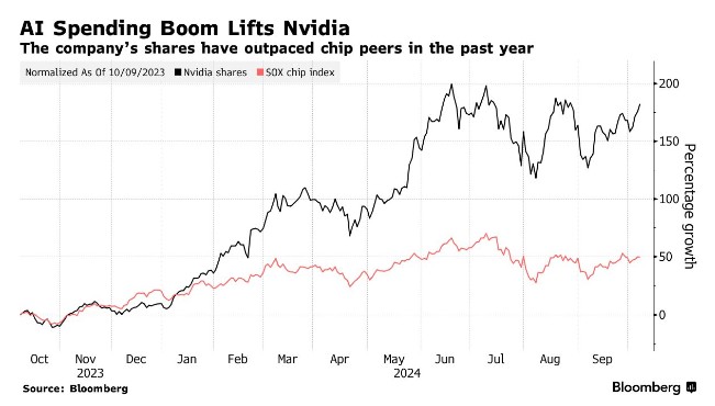 这一峰会持续推动着英伟达股价在周二的上涨,该公司股价最高涨近4.5%,至7月11日以来的三个月最高。继2023年上涨239%之后,该股今年翻了一番多。
