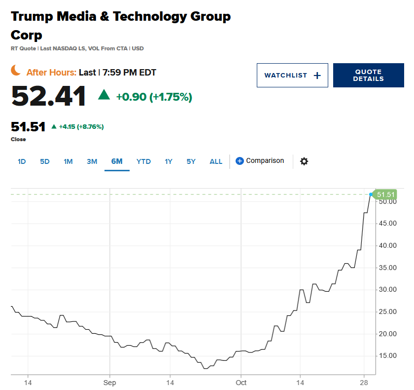 DJT股价周一大涨的原因,则可能是上周日特朗普在纽约麦迪逊广场花园的竞选演讲进一步提振了市场情绪。