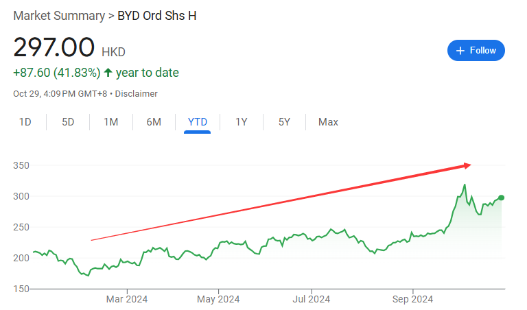 比亚迪港股自2月份的低点已经反弹超过70%。