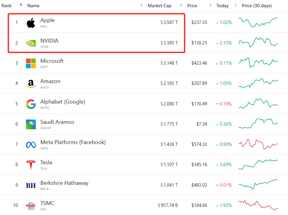 根据CoinGecko的统计数据,自美国大选以来,加密货币市场的总价值已增长近万亿美元,突破3.2万亿美元大关,在全球股票榜单中,则仅次于苹果与英伟达这两大“超级巨无霸”,意味着将加密货币市场视作一只单独的股票的话,其市值仅次于英伟达与苹果,遥遥领先于亚马逊、谷歌、Meta、特斯拉以及沙特阿美等一众全球最顶级上市公司。