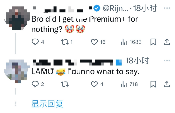 果不其然,刚刚付费(花40美元)升级到X Premium+的用户emo了。