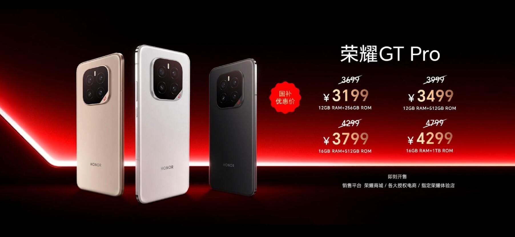 今天下午,荣耀GT Pro正式发布。售价方面,12GB+256GB售价3199元;12+512GB售价3499元,16GB+512GB售价3799元;16GB+1TB售价4299元,以上均为国补后的定价。