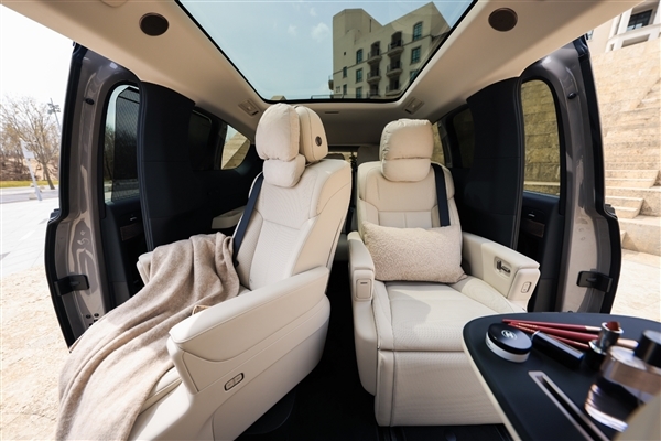 同时,一、二排座椅升级为18点热石揉捏按摩、呼吸式座椅通风等豪华舒适配置,车内空间配备21.4英寸后排大屏幕,让用户拥有顶级的影音娱乐享受。