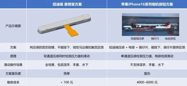 iPhone16相机控制按钮拆解图 - 纽迪瑞/NDT压感sensor
