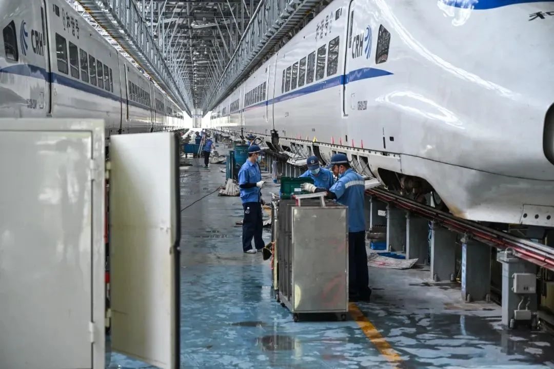 列车完成运输任务后,地勤机械师会安排一套“洗检吹”。
