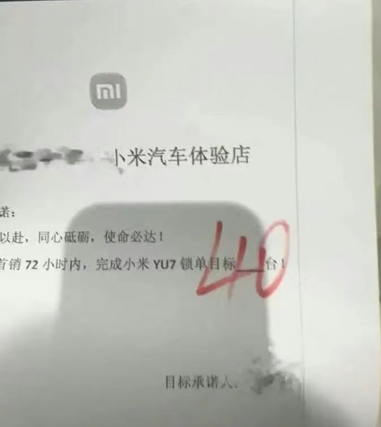 6月26日下午消息,有博主发文曝光了小米YU7首销期间各门店销售人员的目标,流传的图片显示,在首销72小时内,完成小米YU7锁单目标40台。针对此事,小米方面未予置评。