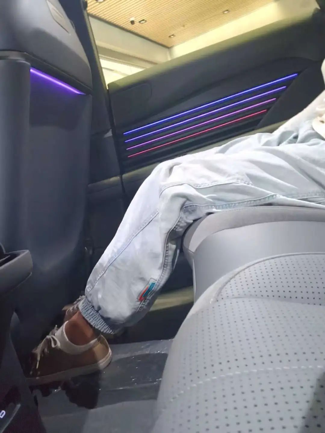 而中控上的氛围灯打在超纤皮上,得把控一个合适的距离,避免被皮料把灯光 “吸” 完了。