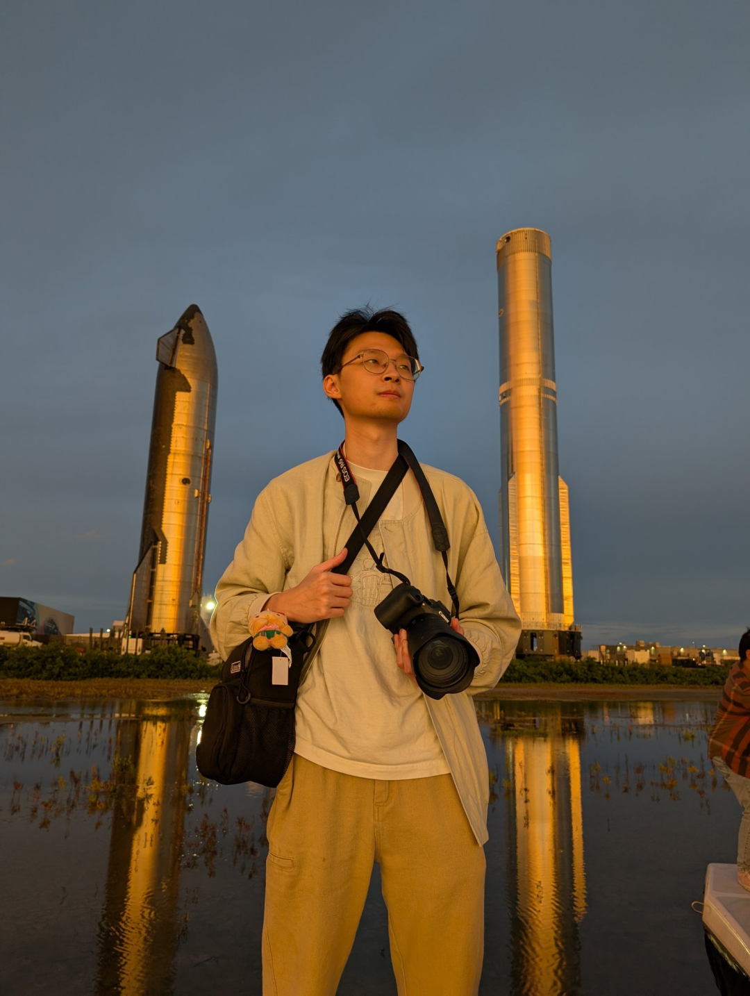 xAI华人研究员骆梁宸,晒出了自己在星舰基地的大片。
