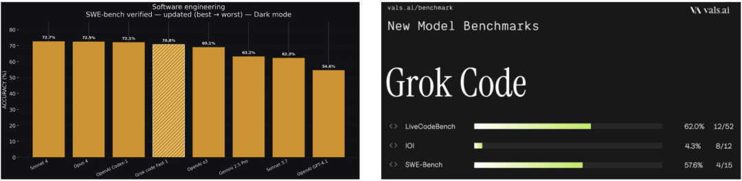 在软件工程的基准测试中,Grok Code一举拿下了 70.8%的高分。
