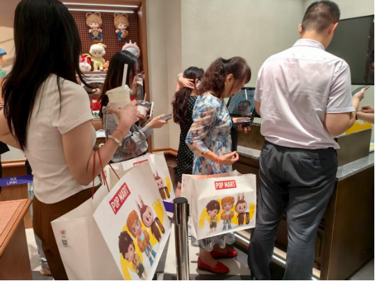 由于目前线下门店只做“迷你Labubu”展示和提货,用户只能通过线上购买,现场并未出现“黄牛加价”和顾客“哄抢”现象。