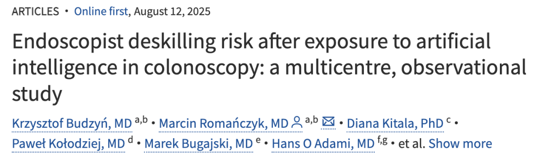 为了check使用AI对人类医生技能的影响,最新研究比较了AI在应用前三个月与应用后三个月,结肠镜检查的质量。