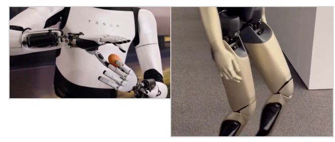 与今年7月特斯拉发布的Optimus卖爆米花视频中的版本相比,不仅是手,“金色擎天柱”在腰部和膝盖关节的构造和外形上也更加流畅且平滑,机械感大大减少。