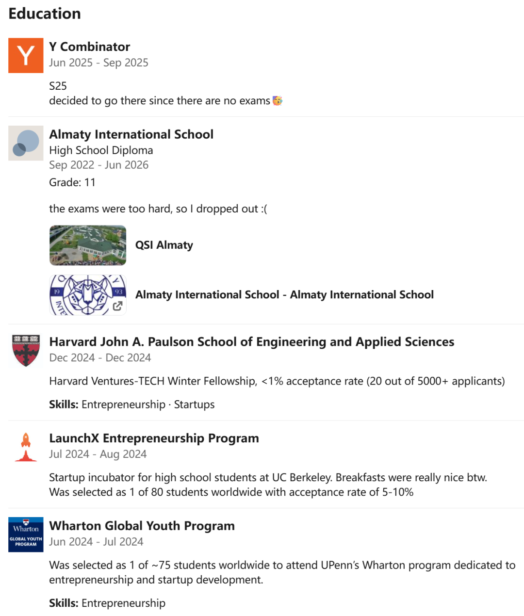 他被YCombinator录取,筹集了100万美元,并从家乡哈萨克斯坦搬到了旧金山。
