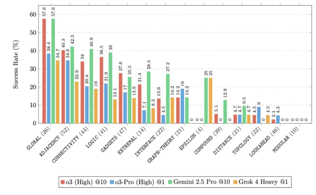 就算是GPT-5,也只做对了4%。其他模型更是惨不忍睹。