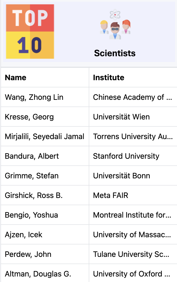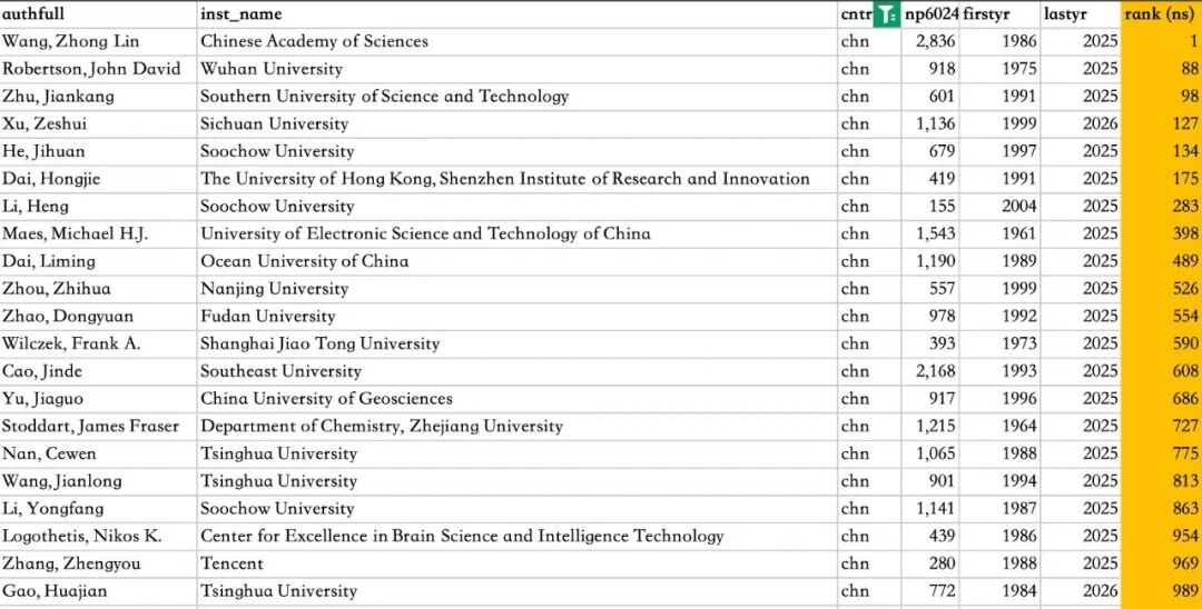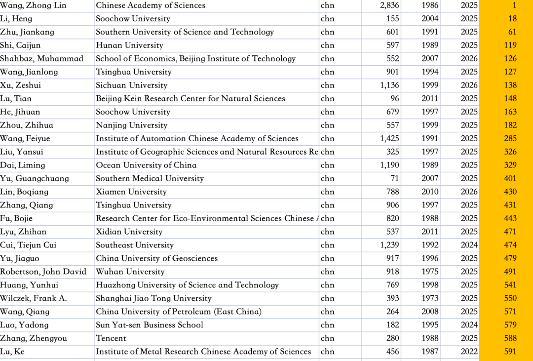 这个列表通过标准化引文指标识别出全球顶尖2%的科学家。