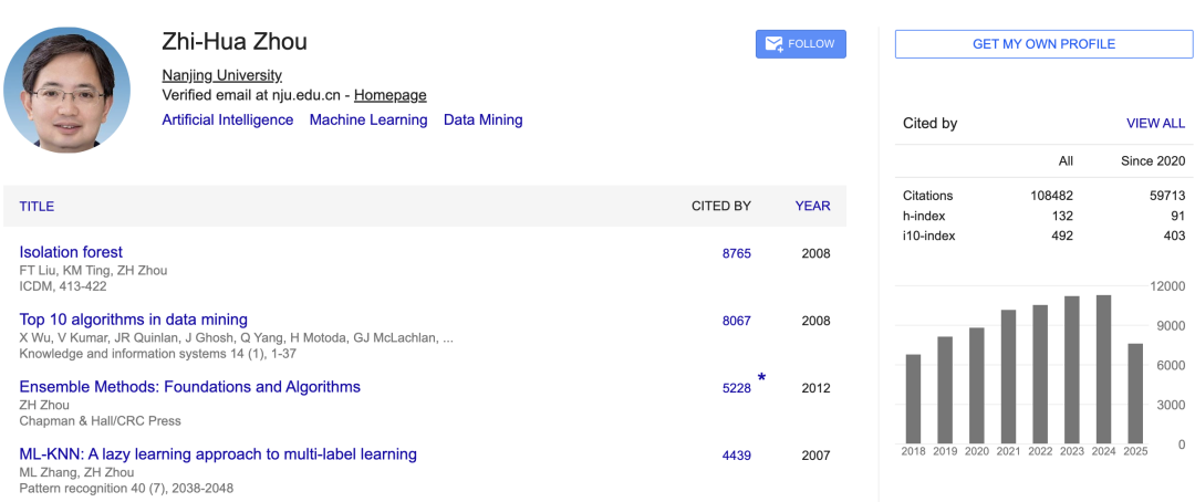 南京大学周志华、腾讯张正友入选“终身科学影响力排行榜”前1000,排名分别为526、969。
