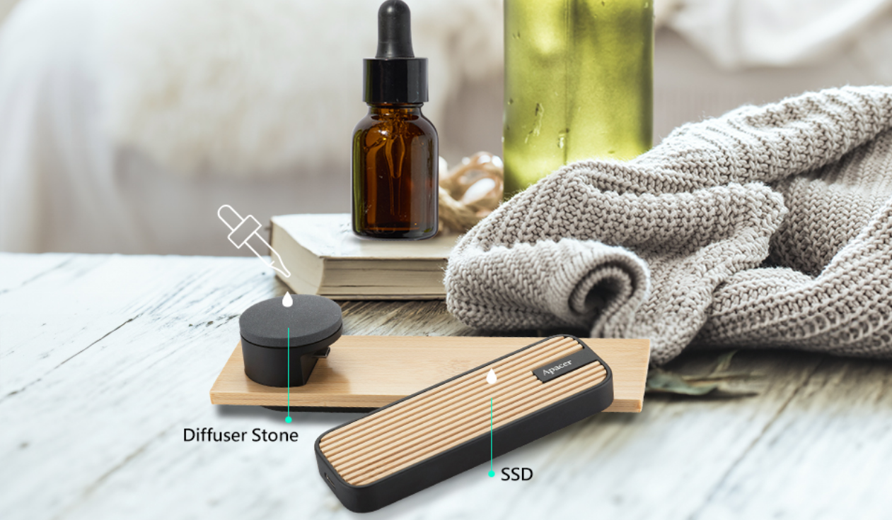 宇瞻(Apacer)近日推出了一款极具创意的移动固态硬盘AS712,将高速存储与香氛元素结合,成为全球首款配备精油扩散器的移动SSD。AS712的设计充满了环保理念,采用了天然竹材和铝合金打造,外壳质感独特,每一块竹材的纹理和色调都独一无二。