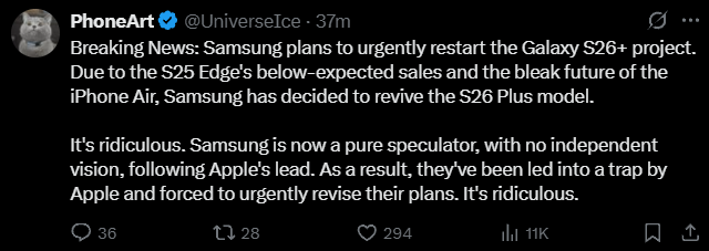 Galaxy S25 Edge销量不及预期 三星计划紧急重启Galaxy S26+